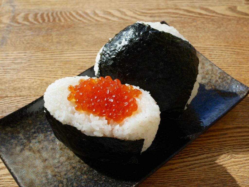 深川産米「ななつぼし」と「おぼろづき」を使用した手作りのおにぎりを提供。1つでもお腹いっぱいになるビックサイズのおにぎりは毎日約10種類が並びます。