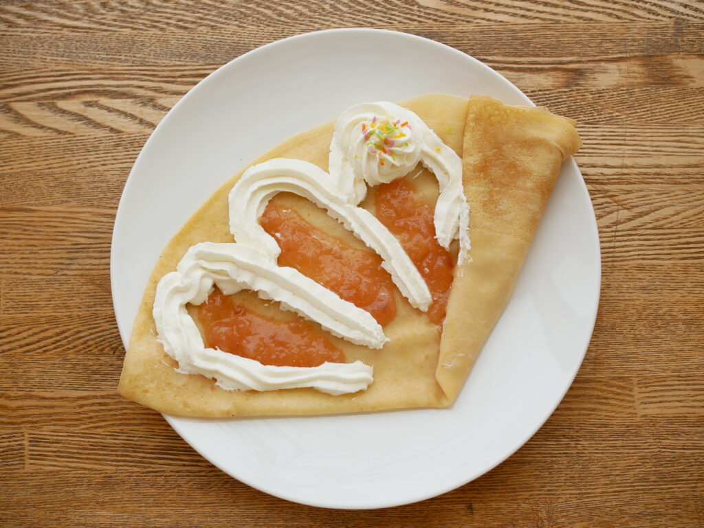 地元「藤谷果樹園」の果物を使用したボリューム満点なフルーツクレープが大人気。