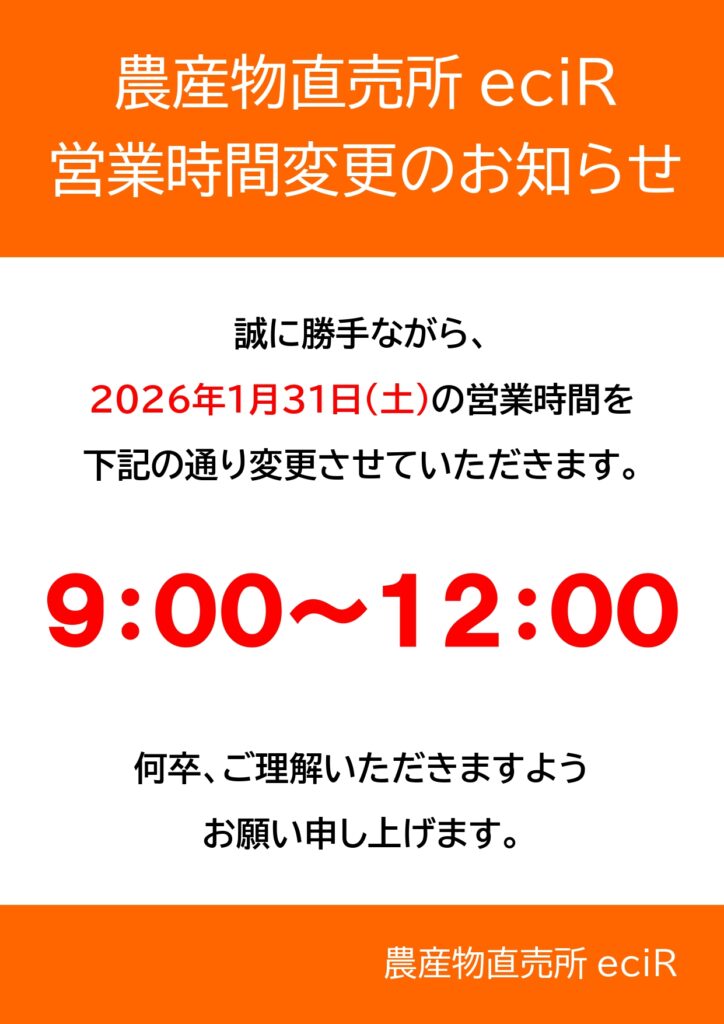 HOME お知らせ 農産物直売所eciR営業時間変更のお知らせ
