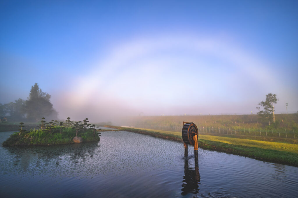 水車の里に架かる白虹