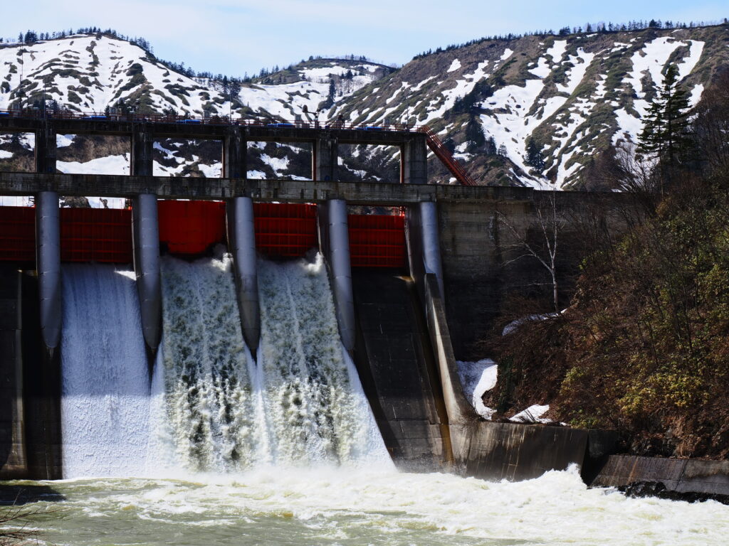 雪解け放水鷹泊ダム